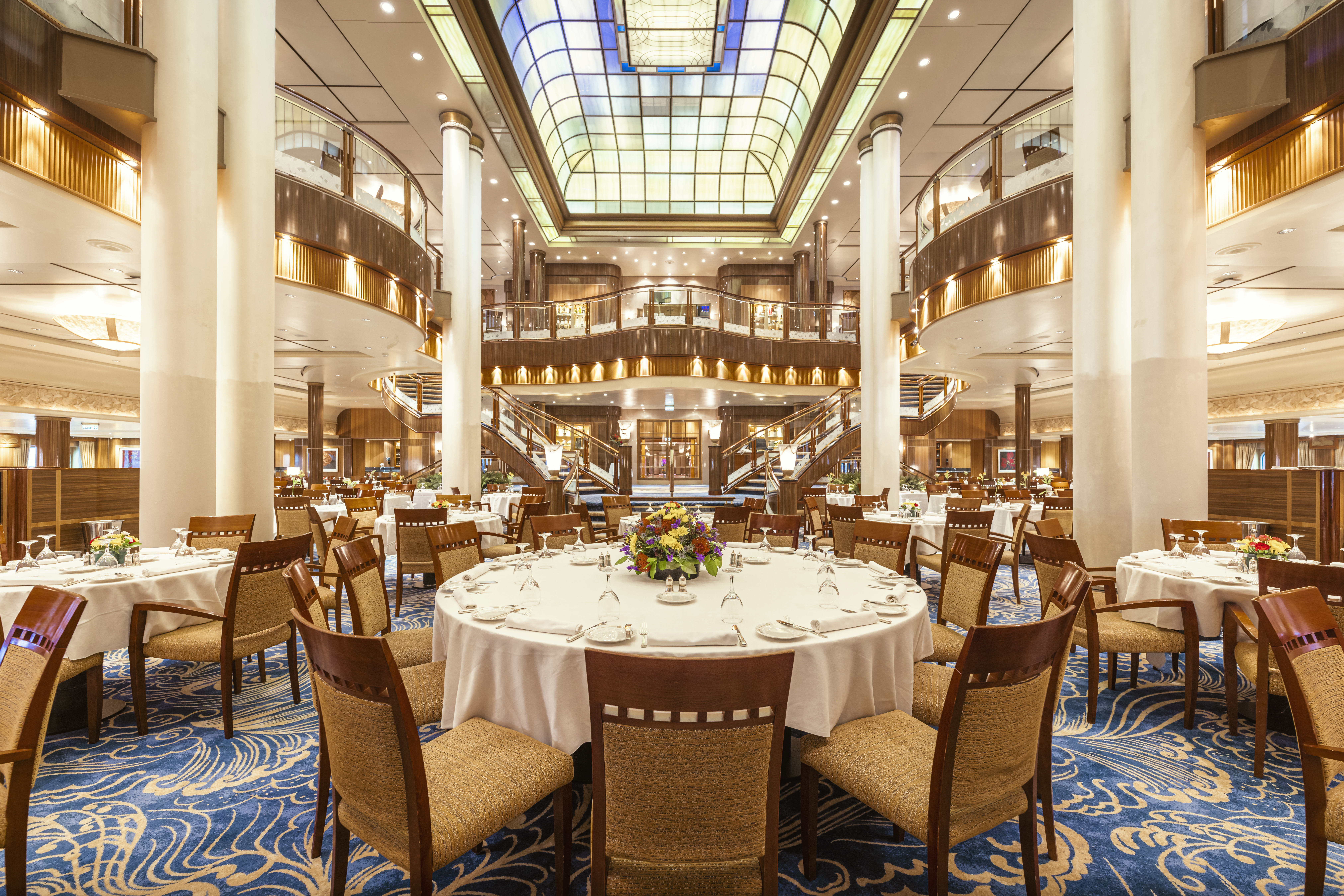 6 restaurants principaux, 14 bars et salons sans oublier la plus grande bibliothèque en mer avec plus de 8,000 livres.