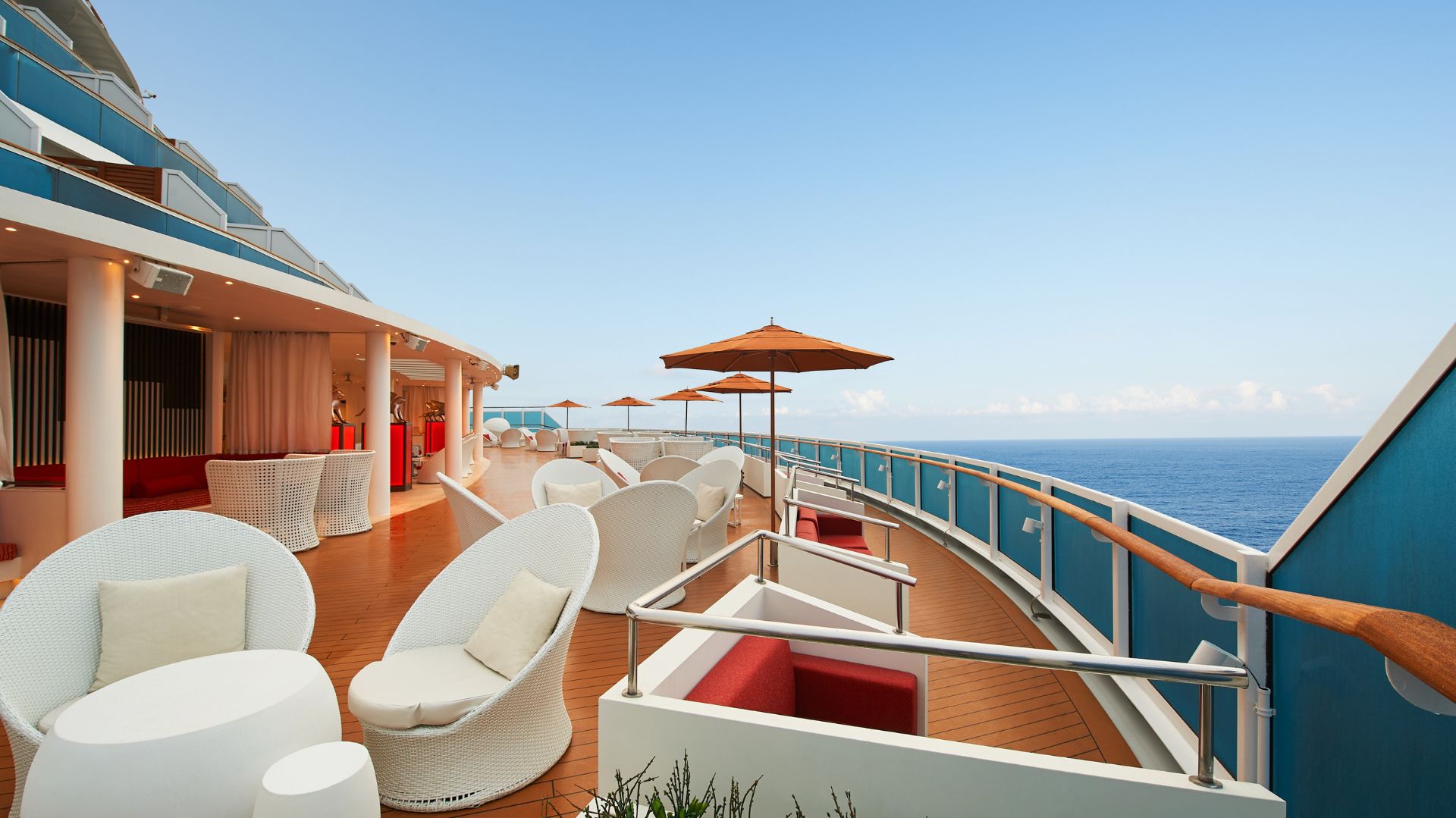 Relaxation totale: piscines, bains à remous, chaises longues et service attentionné du personnel de bord;